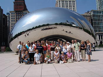 Uczniowie ze szkoły działającej pod patronatem sądeckiej WSB-NLU mieli okazję odwiedzić siedzibę amerykańskiego partnera - National Louis University przy Michigan Avenue w Chicago. Sporo wzruszeń dostarczyło spotkanie z sądeczanami zamieszkałymi od wielu lat w Wietrznym Mieście, zorganizowane przez przewodniczącego oddziału Klubu Przyjaciół Ziemi Sądeckiej Jana Oleksego, któremu wręczono okolicznościowe adresy z podziękowaniem za podtrzymywanie kontaktów z rodzinnym gniazdem nad Dunajcem i Kamienicą od prezydenta Nowego Sącza Ryszarda Nowaka i wicemarszałka Małopolski Leszka Zegzdy.