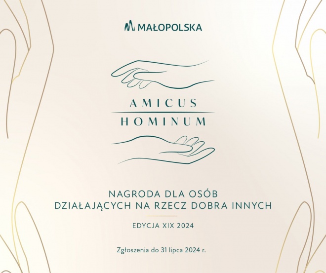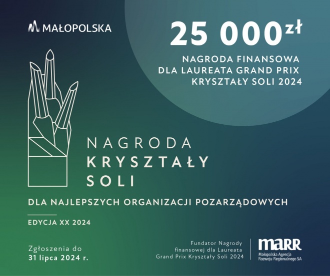 Do 31 lipca 2024 r. można przesyłać zgłoszenia do Nagrody Marszałka Województwa Małopolskiego dla najlepszych organizacji pozarządowych: „Kryształy Soli” oraz do Nagrody Samorządu Województwa Małopolskiego dla Osób Działających na Rzecz Dobra Innych „Amicus Hominum”.