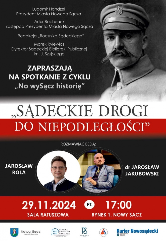 Wydarzenie odbędzie 29 listopada (piątek), o godz.17, w sali ratuszowej. O "Sądeckich drogach do nieodległości" rozmawiać będą Jarosław Rola i dr Jarosław Jakubowski, redaktor naczelny "Rocznika Sądeckiego".
