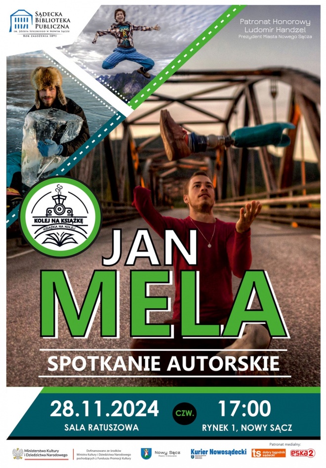 Spotkanie z Janem Melą odbędzie się w ramach zadania literacko-podróżniczego „Kolej na książkę, książka na kolej” dofinansowanego ze środków Ministra Kultury i Dziedzictwa Narodowego pochodzących z Funduszu Promocji Kultury.