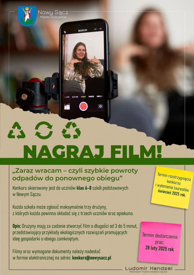 - Filmy oraz wymagane dokumenty należy nadesłać w formie elektronicznej na adres: konkurs@nowysacz.pl