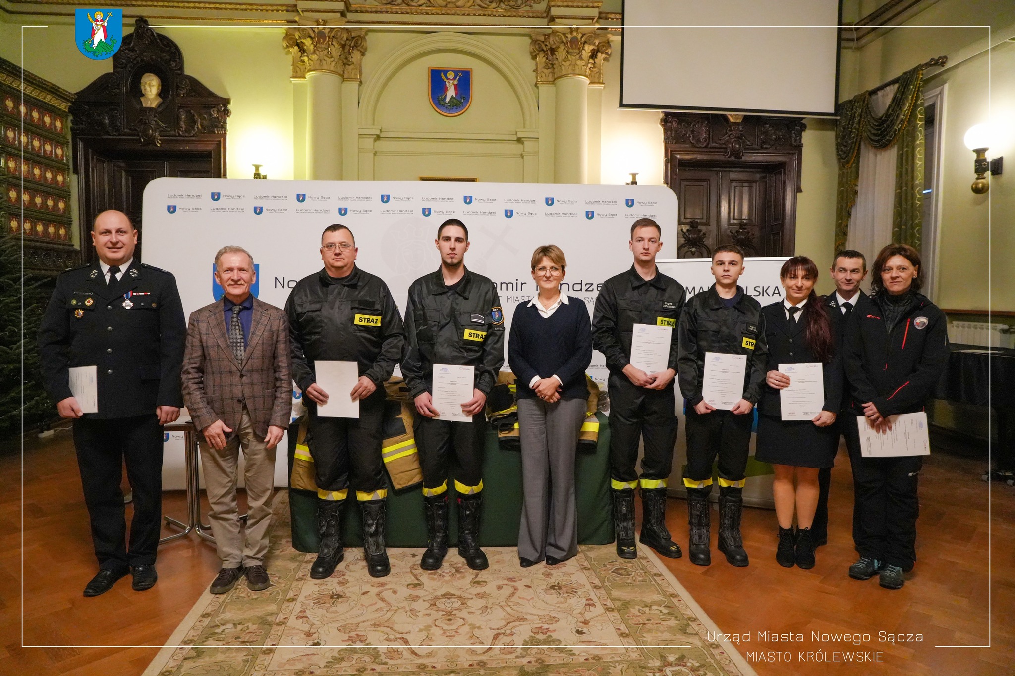 Sądeccy strażacy otrzymali umundurowanie oraz certyfikaty potwierdzające odbyte szkolenia.