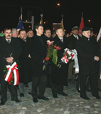 Po uroczystościach kościelnych sądeczanie przeszli w okolice pomnika Solidarności, gdzie złożono wiązanki biało-czerwonych kwiatów. Prezydent Ryszard Nowak powiedział m.in.