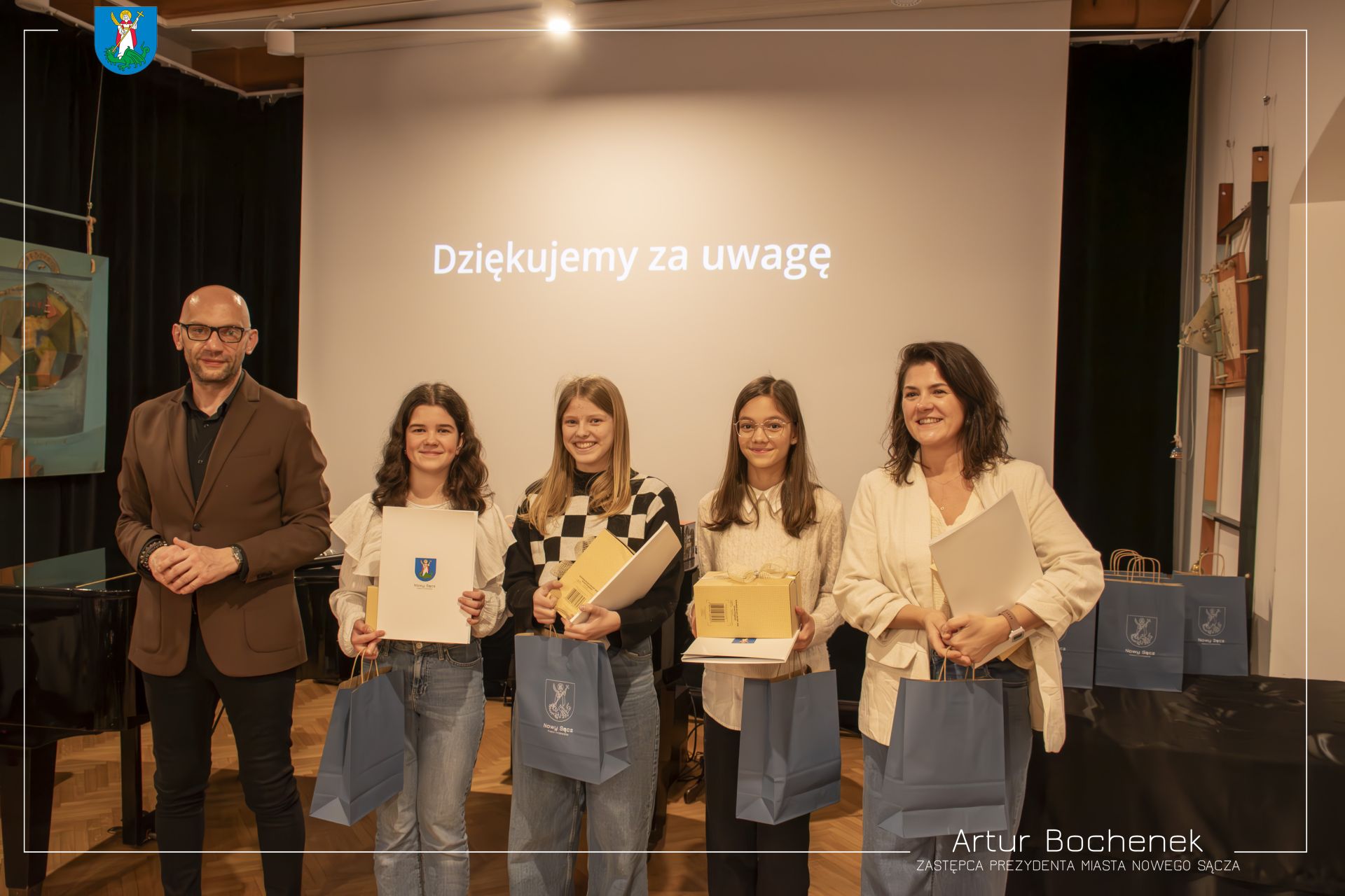 Artur Bochenek, zastępca prezydenta miasta wręczył nagrody uczniom biorącym udział w konkursie pn. "Zaraz wracam, czyli szybkie powroty odpadów do ponownego obiegu".