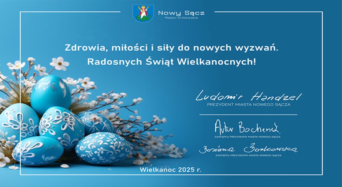 Prezydent Ludomir Handzel oraz jego zastępcy Artur Bochenek i Bożena Borkowska składają Nowosądeczanom życzenia Radosnych Świąt Wielkanocnych.