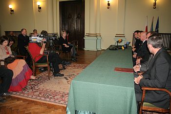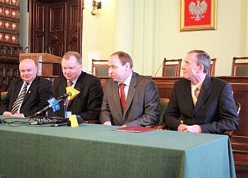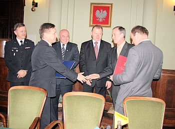 W obecności Prezydenta Nowego Sącza Ryszarda Nowaka, Starosty Nowosądeckiego Jana Golonki oraz Małopolskiego Komendanta Wojewódzkiego Andrzeja Łabuza, Komendant Miejski PSP Janusz Basiaga podpisał umowę z przedstawicielami Firmy ERBET – Tomaszem Ćwikowskim i Romanem Słowikiem dotyczącą budowy strażnicy Komendy Miejskiej PSP wraz z Jednostką Ratowniczo- Gaśniczą PSP 1.