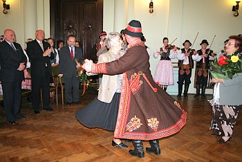 Podczas drugiej części spotkania dla zaproszonych gości zespół „Lachy” zatańczyły i zaśpiewał ludowe przyśpiewki. Na zakończenie prezydent obdarował członków zespołu słodkimi upominkami.