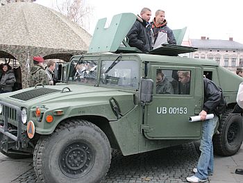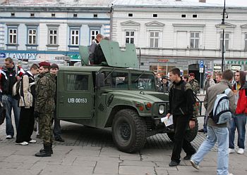 Pokaz sprzętu wojskowego oraz prezentacja specyfiki służby wojskowej towarzyszył akcji promocyjno- rekrutacyjnej do zawodowej służby wojskowej, przeprowadzona przez przedstawicieli 6 Brygady Desantowo Szturmowej w Krakowie.