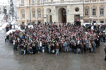 Prezydent Ryszard Nowak życzył maturzystom tradycyjnego „połamania pióra” na egzaminie maturalnym i zaprosił do wspólnego pamiątkowego zdjęcia.