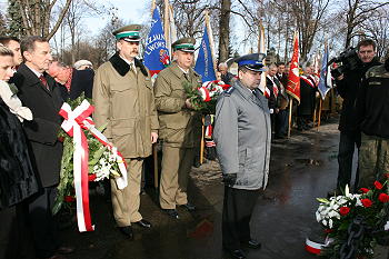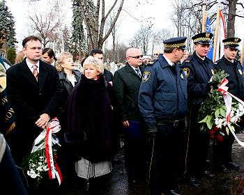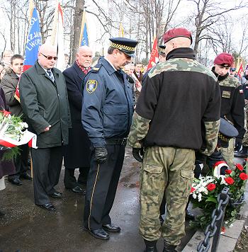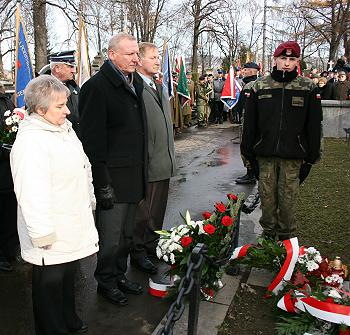 Kwiaty składali m.in. Prezydent Miasta Nowego Sącza – Ryszard Nowak, wraz zastępcami: Bożeną Jawor i Jerzym Gwiżdżem, Poseł na Sejm RP – Arkadiusz Mularczyk, przedstawiciele pozostałych parlamentarzystów, Przewodniczący Rady Miasta – Artur Czernecki, wraz z zastępcami: Jerzym Wituszyńskim i Stefanem Homoncikiem, Wicemarszałek Województwa Małopolskiego – Leszek Zegzda, Andrzej Szkaradek – Przewodniczący NSZZ Solidarność, delegacje szkół, Policji, Wojska Polskiego, delegacje organizacji kombatanckich i Związek Strzelecki „Strzelec”.