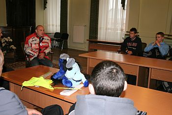 Sportowiec opowiadał młodym ludziom o swojej pasji, o rajdach i przestrzegał czym grozi jazda pod wpływem alkoholu oraz z nadmierną prędkością.