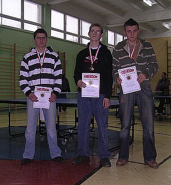 Do finałów dotarło czterech zawodników: Tadeusz Małek z klasy IF, Piotr Majerski z klasy IVE, Piotr Cewka IIB i Wojciech Szpila 3b. Po spotkaniach półfinałowych o pierwsze miejsce w turnieju zagrali Piotr Cewka i Wojciech Szpila. Ten pierwszy po bardzo ładnej grze wygrał 2:0 w setach.
