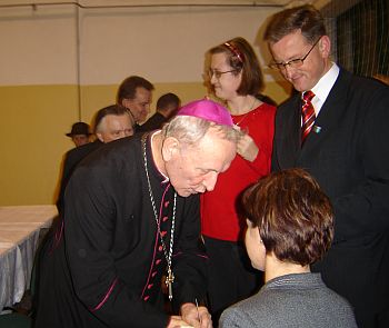 Następnie przy melodii kolęd ksiądz biskup, prezydent miasta oraz zaproszeni goście składali sobie życzenia świąteczne.