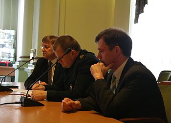 Spotkaniu przewodniczyli: Dyrektor Wydziału Zarządzania Kryzysowego i Ochrony Ludności Marek Nieć oraz Zastępca Komendanta PSP Paweł Motyka. W posiedzeniu brał udział również Dyrektor Delegatury Kuratorium Oświaty w Nowym Sączu Stanisław Szudek.