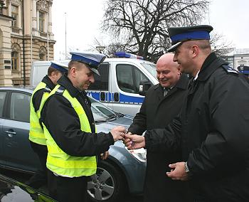 Prezydent Ryszard Nowak życzył funkcjonariuszom dalszych sukcesów w pracy na rzecz społeczeństwa i wyraził nadzieję, że nowy sprzęt usprawni wykonywanie trudnego zawodu policjanta.