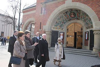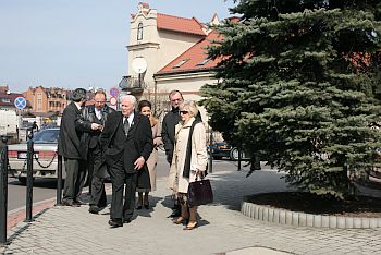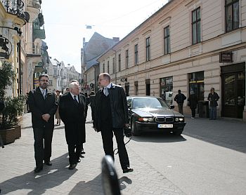 Przydent Ryszard Kaczorowski oraz jego małżonka zdecydowali się na krótki spacer po Nowym Sączu. Goście podziwiali kamieniczki na ulicy Jagiellońskiej, Rynek, pomnik papieża Jana Pawła II, fontannę i ratusz.