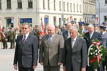 Po mszy świętej, poczty sztandarowe, prezydent miasta wraz z zastępcami, parlamentarzyści, radni, przedstawiciele władz wojewódzkich i powiatowych, przedstawiciele instytucji miejskich, rzemieślnicy i kombatanci przeszli w okolice pomnika papieża Jana Pawła II, u stóp którego złożono biało-czerwone kwiaty.