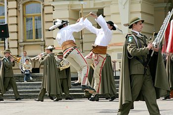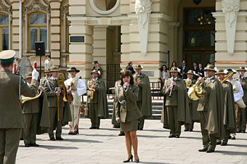 Na płycie Rynku odbył się pokaz musztry paradnej w wykonaniu Orkiestry Reprezentacyjnej Karpackiego Oddziału Straży Granicznej.
