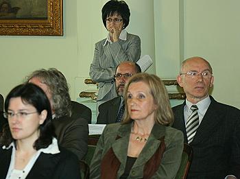 Następnie Prorektor do spraw Nauki, Współpracy i Rozwoju – doc. dr Zdzisława Zacłona przedstawiła prezentację pod tytułem: „Rozwój PWSZ w Nowym Sączu, w minionym dziesięcioleciu”. Na podstawie szczegółowego raportu, opatrzonego prezentacją multimedialną, pani prorektor pokazała, jak na przestrzeni dziesięciu lat szkoła budowała zaplecze naukowe. Zostały zaprezentowane nowe instytuty: Języków Obcych i Techniczny. Słuchacze zapoznali się także z planami budowy i wizualizacją Instytutu Kultury Fizycznej. Niedługo zostanie uruchomiona nowa uczelniana biblioteka. Pani prorektor przedstawiła wzrastającą z roku na rok liczbę studentów, którzy podejmują studia we wszystkich instytutach PWSZ. Była mowa także o nawiązanej naukowej współpracy międzynarodowej z uczelniami w Rosji, Niemczech, Włoszech, Słowacji, Serbii i w innych krajach. W prezentacji znalazła się również informacja o tym, że sądecki PWSZ zapoczątkował w ostatnich latach organizowanie konferencji naukowych o charakterze międzynarodowym.