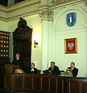Po zakończonej prezentacji Wicewojewoda Małopolski - Stanisław Sorys wręczał nauczycielom akademickim odznaczenia państwowe, a Rektor PWSZ – honorowe odznaki „Zasłużony dla PWSZ”.