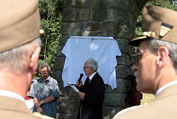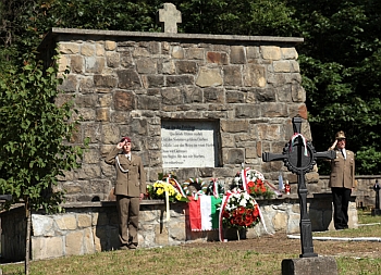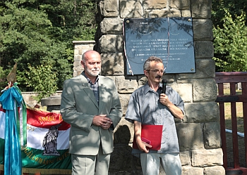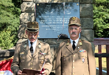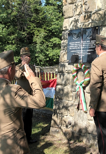 Tablica memoratywna upamiętniająca poległych żołnierzy węgierskich znajduje się też na cmentarzy wojennym nr 123 na wzgórzu Pustki.