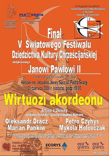 Finał zaplanowano na 21 czerwca. W kościele o.o. Jezuitów z koncertem wystąpi Kwartet Akordeonowy „Harmonia” z Ukrainy. Organizatorem Festiwalu jest Światowe Stowarzyszenie Kultury Chrześcijańskiej im. Jana Pawła II.