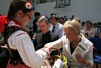 Staramy się pokazać otaczającą nas rzeczywistość w pozytywnym wymiarze, uczyć szacunku do drugiego człowieka, budować więzi koleżeńskie i rodzinne, dostrzegać piękno Małej i Dużej Ojczyzny, doceniać wartość polskiej historii i kultury, być otwartym na europejskich sąsiadów, nieść pomoc potrzebującym, także z krajów misyjnych”. Halina Węgrzyn podziękowała również władzom miasta, nauczycielom, rodzicom, Zarządowi Osiedla Wojska Polskiego, Parafii p/w MBN za okazaną pomoc i wkład w kształtowanie społeczności szkolnej.
