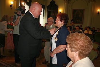 Prezydent Ryszard Nowak wręczył jubilatom medale "Za długoletnie pożycie małżeńskie" oraz złożył życzenia zdrowia i pomyślności. Na zakończenie uroczystości odśpiewano tradycyjne „Sto lat”, później bliscy i znajomi złożyli jubilatom życzenia.
