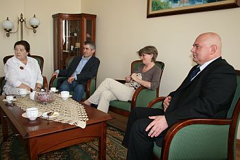 Katarzyna Łaniewska - znana aktorka między innymi z serialu ”Plebania” i aktor Stanisław Górka gościli u prezydenta Nowego Sącza Ryszarda Nowaka i wiceprezydent Bożeny Jawor. Aktorzy dzień wcześniej wystąpili na deskach sceny MOK w sztuce pt „Teściowa i zięć”. Spektakl wyreżyserowała Grażyna Matyszkiewicz a opracowanie muzyczne przygotowała Irena Kluk-Drozdowska, która również była gościem w ratuszu. Spotkanie było okazją do złożenia życzeń urodzinowych znanej polskiej aktorce.