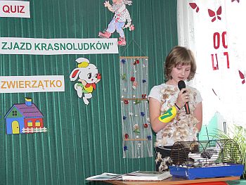 Kulminacją programu był konkurs wiedzy w formie quizu." Mistrzem ekologii" została uczennica klasy VI Agnieszka Karwala, tuż za nią Gabriela Bochniarz i Justyna Ziółkowska- uczennice kl.V. Radosne uśmiechy, wdzięczne serca, gromkie brawa i podziękowania od dzieci otrzymali przybyli goście: Pani Elżbieta Chowaniec- radna miasta Nowego Sącza oraz Pan Traciłowski, który reprezentował Wydział Gospodarki Komunalnej i Ochrony Środowiska UM Nowego Sącza. Nagrodzili zwycięzców konkursowych przyniesionymi książkami oraz krzewami ozdobnymi. Tradycyjnie kilka krzewów do ogrodu otrzymała szkoła, które zostały przekazane dyrektorowi szkoły-Pani mgr Halinie Stanek.