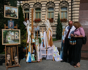 Goście odwiedzający stoiska rzemieślników i artystów z regionu, mogli zakupić rozmaite anielskie pamiątki ze sznurka, koronek, wosku i drewna, rzeźby, obrazy i malowidła na szkle. Motyw aniołów pojawił się nawet w biżuterii. W anielski klimat wprowadzał zwiedzających wiceprezydent Jerzy Gwiżdż – pomysłodawca Jarmarku Anielskiego, który również odwiedził kramy oraz z zainteresowaniem przyglądał się wystawionym zbiorom.
