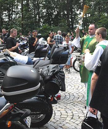 W dniu patrona wszystkich zmotoryzowanych – Świętego Krzysztofa, w kościele pw. Świętego Antoniego w dzielnicy Falkowa spotkali się kierowcy jednośladów. We mszy świętej, której przewodniczył ksiądz Ryszard Podstołowicz – także miłośnik motocykli – przy koncelebrze księdza Ryszarda Kudronia, wzięło udział około 230 właścicieli jednośladów. Równo pięć lat temu kilku pasjonatów zapoczątkowało zwyczaj święcenia motocykli w dniu patrona motoryzacji. Wśród nich byli m.in. Krzysztof Kronenberger, Artur Czernecki i Mieczysław Frączek. Młoda tradycja z roku na rok znajduje coraz więcej naśladowców i każdego roku do Nowego Sącza, na poświęcenie motocykli przyjeżdża coraz więcej zmotoryzowanych. Po obrzędzie poświęcenia pojazdów, którego dokonał ksiądz Podstołowicz wszyscy uczestnicy zjazdu przyjechali na płytę sądeckiego Rynku, aby złożyć kwiaty pod pomnikiem Jana Pawła II. W delegacji motocyklistów obecna była rzecznik prasowy sądeckiej Policji - Beata Fröhlich.