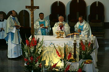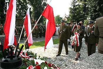 Wiceprezydent Miasta - Bożena Jawor uczestniczyła w obchodach Święta Wojska Polskiego. Uroczystości rozpoczęły się od mszy świętej sprawowanej w intencji Ojczyzny, w kościele Matki Bożej Niepokalanej. Główny celebrans eucharystii – ksiądz prałat Stanisław Czachor przestrzegał w homilii przed relatywizmem i nawoływał do obrony podstawowych praw człowieka. Jeśli zabijanie dziecka nienarodzonego nazywają niektórzy przerwaniem ciąży, to ci sami zabicie emeryta powinni nazwać przerwaniem emerytury. Trzeba zrezygnować z łatwego zysku, który można szybko osiągnąć, wchodząc w struktury łamiące prawo stanowione. Polacy muszą strzec Ojczyzny nawet za cenę przypisywania im łatek oszołomów. Dziś wszyscy tęsknimy do Polski naszych ojców – czystej, z krystaliczną wodą w strumieniach, za zdrowymi i dorodnymi lasami, za krajem, jaki pamiętamy jeszcze z dzieciństwa. Ksiądz Czachor przywoływał teksty romantyków: Norwida, Słowackiego i Krasińskiego, słynących z umiłowania Ojczyzny ponad wszystko. Należy strzec Rzeczypospolitej Polskiej jako największego skarbu.