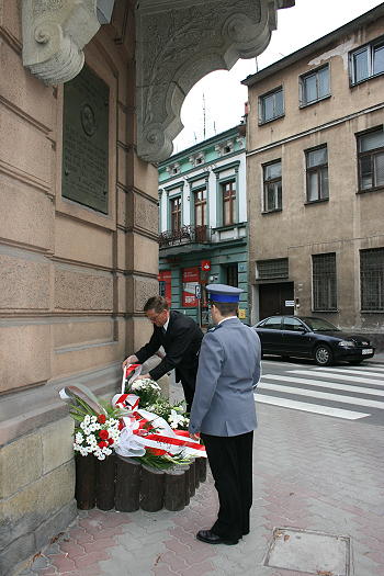 Około południa złożono także kwiaty przed tablicą upamiętniającą postać Naczelnika Polskich Sił Zbrojnych – Józefa Piłsudskiego. Tablica znajduje się na ścianie kamienicy, przy ulicy Dunajewskiego, w której miał niegdyś nocować Marszałek.