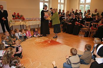 Wiceprezydent Nowego Sącza Bożena Jawor uczestniczyła w uroczystości otwarcia Niepublicznego Przedszkola im. Świętej Rodziny, prowadzonego przez Siostry Felicjanki. To kolejne już w Nowym Sączu katolickie przedszkole, w którym program wychowawczy oparty jest na wartościach religijnych i patriotycznych. „Obecnie do grupy uczęszcza 27 dzieci, w wieku 3, 4 lata. W przyszłym roku zamierzamy otworzyć kolejną grupę przedszkolną. Realizujemy jeden z najlepszych programów wychowawczych. Już po kilku tygodniach pracy z dziećmi widać jak chętnie się uczą nowych piosenek, wierszy. Chciałabym przekazywać im wartości chrześcijańskie, oraz uczyć miłości do Ojczyzny”- mówi Siostra Monika, wychowawczyni w przedszkolu.