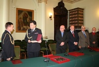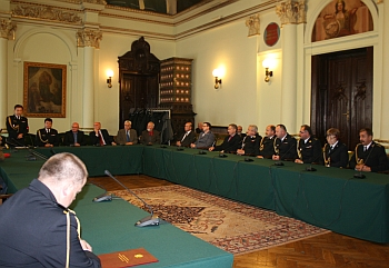 W sądeckim ratuszu, gdzie odbyła się pierwsza część uroczystości, Komendant Miejski bryg. Janusz Basiaga przypomniał historię starań o drabinę oraz podziękował wszystkim, dzięki którym udało się ten sprzęt zakupić. Małopolski Komendant Wojewódzki PSP w Krakowie st. bryg. Andrzej Mróz wręczył Komendantowi Miejskiemu PSP oficjalny Akt przekazania nowej drabiny.