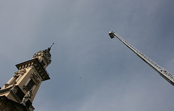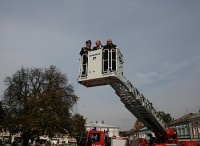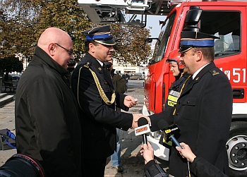 Na zakończenie oficjalnie zaprezentowano autodrabinę. A pierwszymi, którzy udali się na wysokość 37 m byli prezydent Ryszard Nowak oraz wiceprezydent Jerzy Gwiżdż.