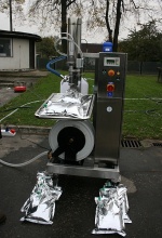 Na zakończenie zaprezentowano alternatywną formę zaopatrzenia miasta w wodę pitną w warunkach zagrożenia, przy wykorzystaniu urządzenia „WODOERKA”.