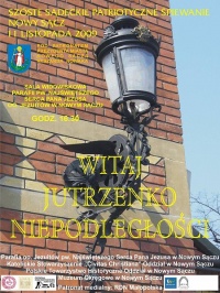 11 listopada, o godz. 16.30 w sali widowiskowej Parafii pw. Najświętszego Serca Pana Jezusa w Nowym Sączu odbędzie się VI Sądeckie Patriotyczne Śpiewanie. Organizatorzy zapraszają wszystkich mieszkańców do wspólnego śpiewu pieśni patriotycznych. W tym roku obchodzona jest 91. rocznica odzyskania przez Polskę Niepodległości. Organizatorami spotkania są: Katolickie Stowarzyszenie „Civitas Christiana” w Nowym Sączu, Polskie Towarzystwo Historyczne Oddział w Nowym Sączu, Muzeum Okręgowe w Nowym Sączu oraz Drukarnia FLEXERGIS (d. BAAD) w Nowym Sączu. Patronat nad IV Sądeckim Patriotycznym Śpiewaniem objął Prezydent Nowego Sącza Ryszard Nowak.