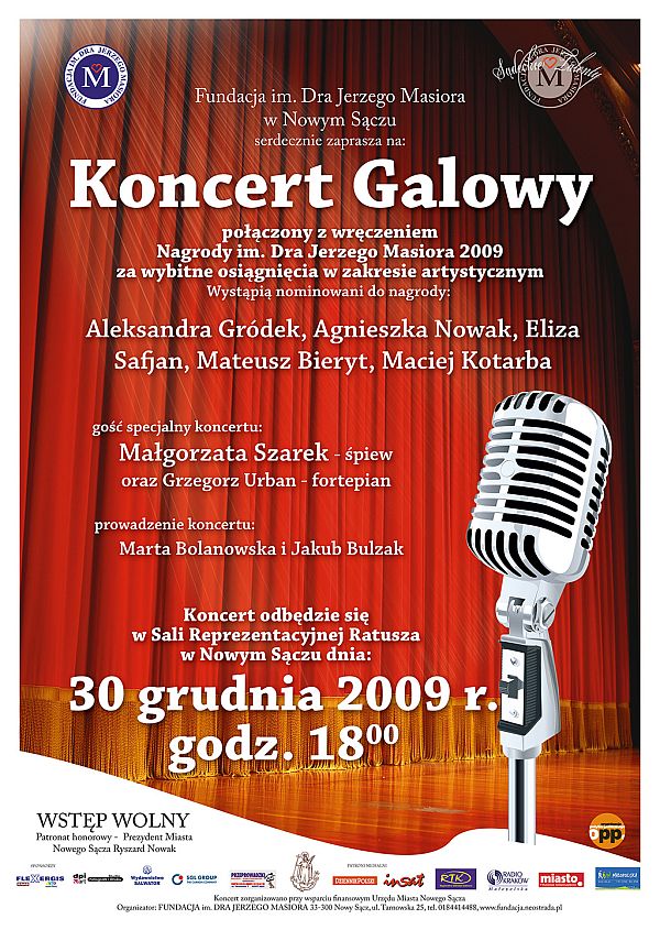 Fundacja im. Dra Jerzego Masiora w Nowym Sączu po raz trzeci organizuje Koncert Galowy połączony z wręczeniem nagrody, która przyznawana jest za wybitne osiągnięcia w zakresie artystycznym.