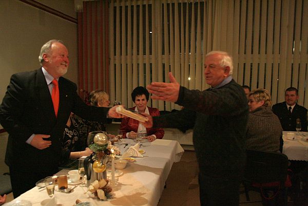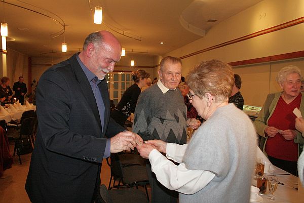 Józef Kaczmarczyk przekazał również upominki dla najstarszej i najstarszego uczestnika spotkania. Nie zabrakło również poczęstunku i wspólnego kolędowania.