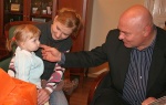 Gratulował rodzicom, pytał o zdrowie i o to, jak minął ten jakże ważny dla rozwoju dziecka rok. Początkowo Julka była onieśmielona, ale po kilkunastu minutach znalazła się na rękach prezydenta.