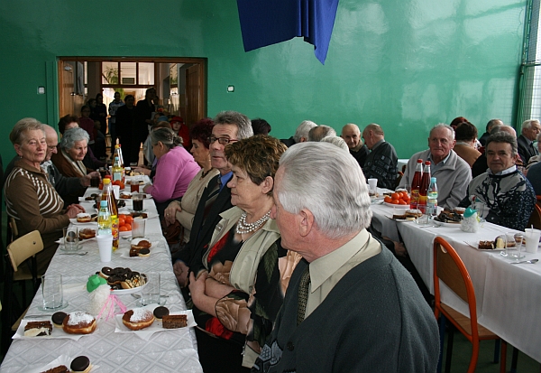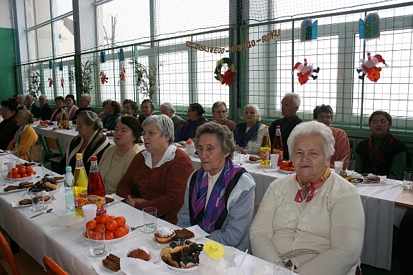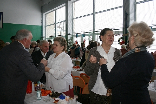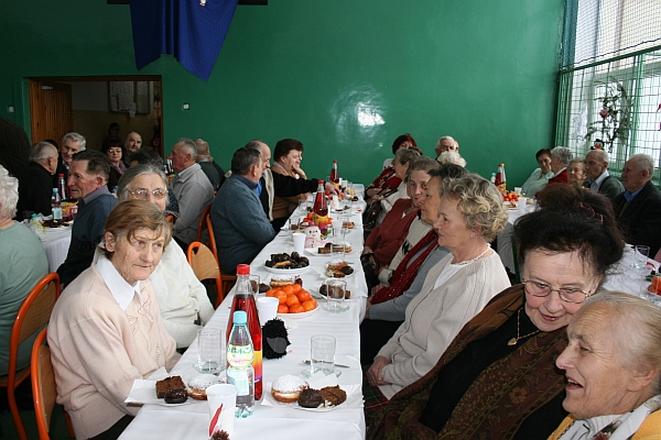 Następnie wiceprezydent Bożena Jawor złożyła seniorom najlepsze życzenia, zdrowia, dużo dobra, serdeczności i uśmiechu wokół oraz wszelkiej pomyślności w nowym roku. Do życzeń dołączyła się przewodnicząca Teresa Cabała oraz ks. prałat Józef Janas, który poświęcił opłatki. Po modlitwie, przy dźwiękach kolęd w wykonaniu zespołu instrumentalno – wokalnego z parafii św. Rocha w Dąbrówce, seniorzy przełamali się opłatkiem życząc sobie wszystkiego dobrego.