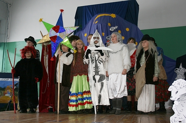 Dzieci z klas „0” SP nr 9 przywitały zebranych gości barwnymi jasełkami. Cześć artystyczną zakończył występ grupy Cudoki-Szuroki z Miejskiego Ośrodka Kultury w Nowym Sączu.