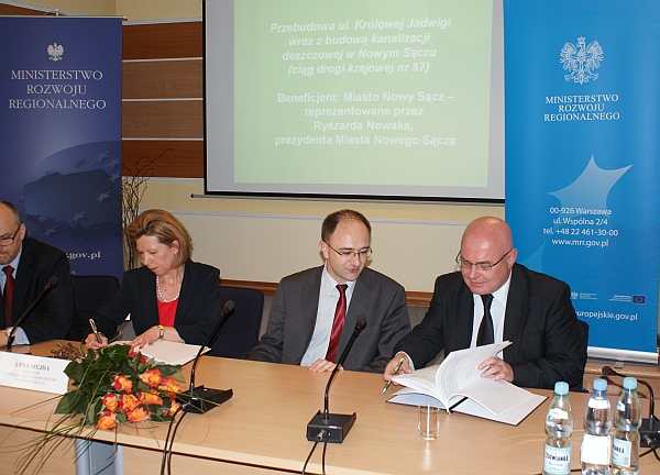 Prezydent Nowego Sącza Ryszard Nowak podpisał umowę o dofinansowanie dla zadania pod nazwą „Przebudowa ul. Królowej Jadwigi wraz z budową kanalizacji deszczowej w Nowym Sączu (ciąg drogi krajowej nr 87). Całkowity koszt projektu wynosi 20 087 581, 67 zł, z czego kwota dofinansowania z Unii Europejskiej to 17 074 444,41 zł.