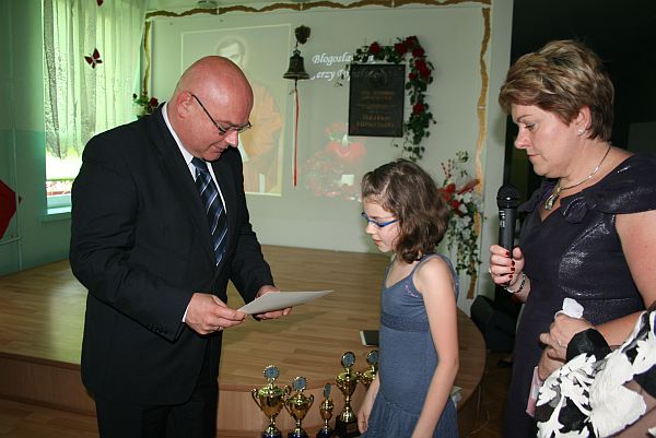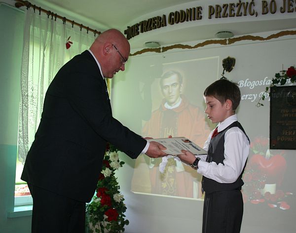 Święto Szkoły było okazją do przekazania dyplomów i wyróżnień dla zwycięzców konkursów międzyszkolnych związanych z życiem i działalnością bł. ks. Jerzego Popiełuszki.