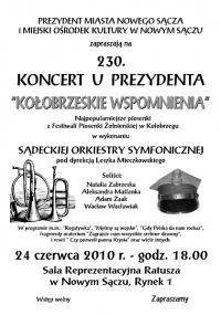 Prezydent Miasta Nowego Sącza i Miejski Ośrodek Kultury w Nowym Sączu zapraszają serdecznie na 230. KONCERT U PREZYDENTA pt. „KOŁOBRZESKIE WSPOMNIENIA”.