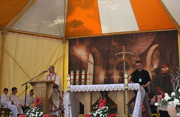 XVIII Międzynarodowy Festiwal Dziecięcych Zespołów Regionalnych ŚWIĘTO DZIECI GÓR rozpoczął się mszą świętą przy ołtarzu polowym Bazyliki św. Małgorzaty. W nabożeństwie oprócz dzieci z Polski i zagranicy, uczestniczyła wiceprezydent Bożena Jawor, organizatorzy imprezy oraz zaproszeni goście.