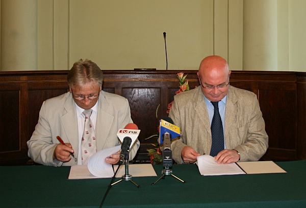 W podpisaniu porozumienia uczestniczyli: prezes MPK Andrzej Górski, Jadwiga Kusiak Skarbnik Miasta, Piotr Witek Przewodniczący Rady Gminy Kamionka Wielka oraz Maria Wiatr Skarbnik Gminy.