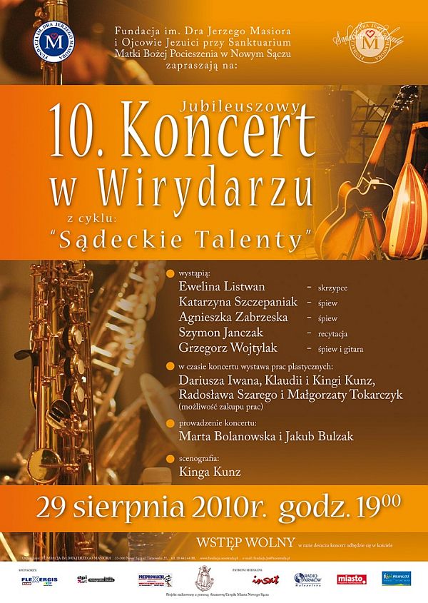 Fundacja im. Dra Jerzego Masiora w Nowym Sączu serdecznie zaprasza na 10. Koncert w Wirydarzu z cyklu „Sądeckie Talenty”.